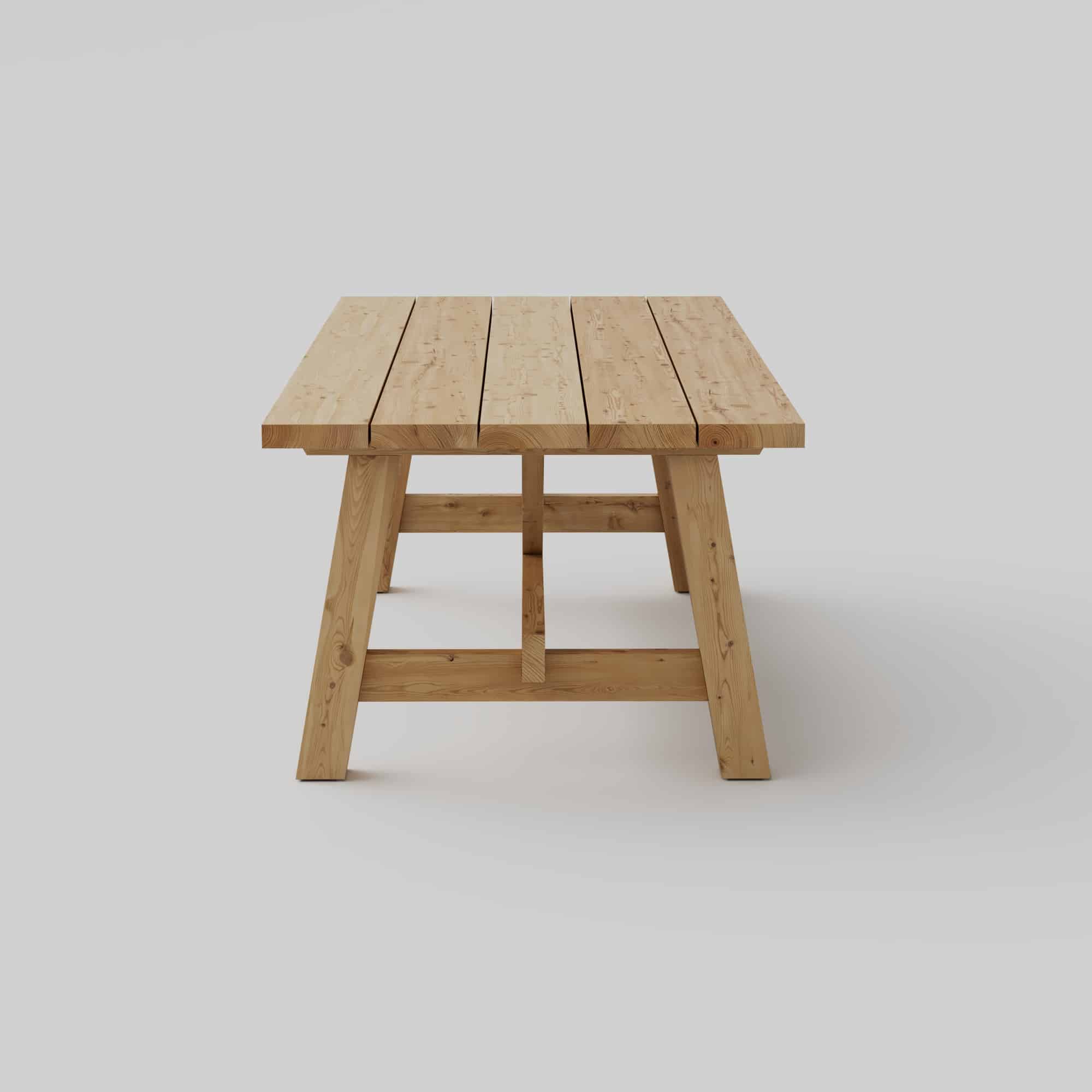 Die Tischplatte besteht aus fünf robusten Brettern, die jeweils 225 cm lang sind und eine großzügige Oberfläche bieten, die sich perfekt für Mahlzeiten, gesellige Runden und andere Aktivitäten eignet. Dies verleiht dem Tisch eine beeindruckende Präsenz in jedem Raum, ob er nun drinnen oder draußen steht.